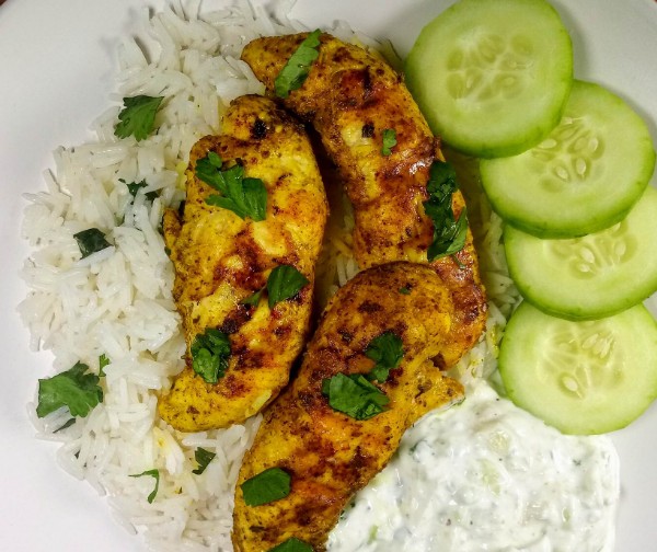 Forewarning, this grilled chicken recipe is using a portable electronic grill (aka a George Foreman) and not an actual grill. It makes this recipe ideal if you live in an apartment and can’t have a grill, but don’t want to heat up the apartment on a hot summer day! To make this recipe even more refreshing serve with a side of raita!